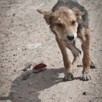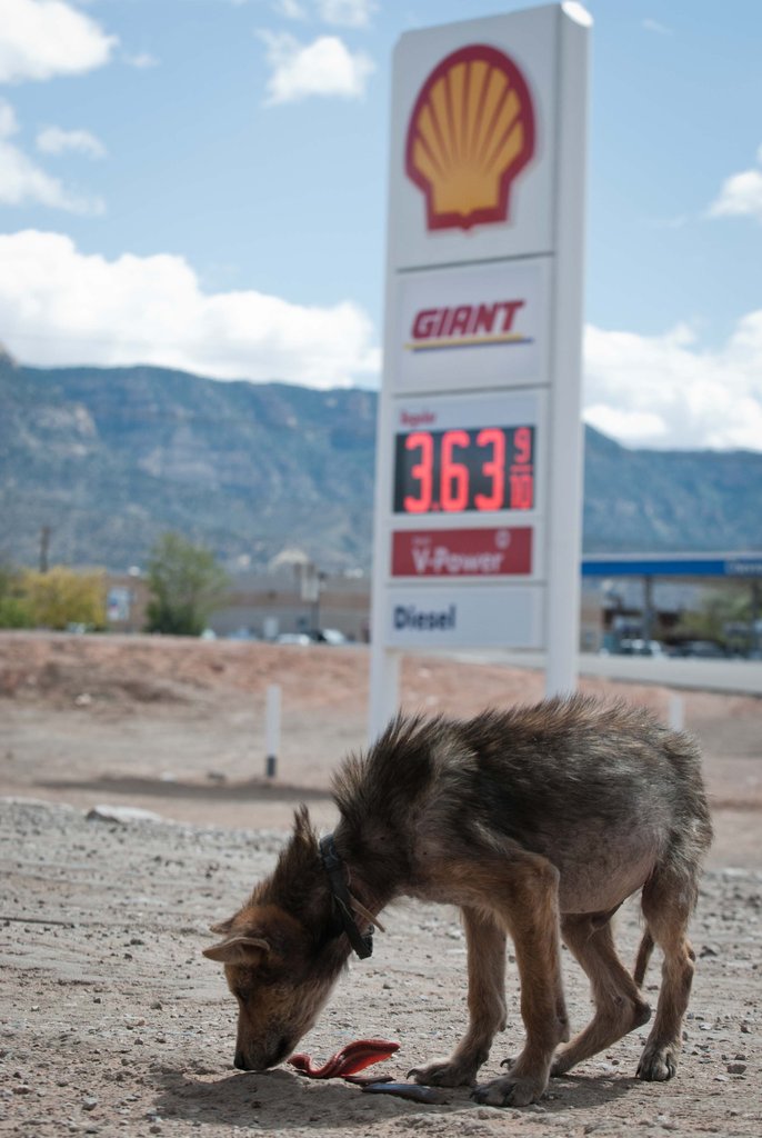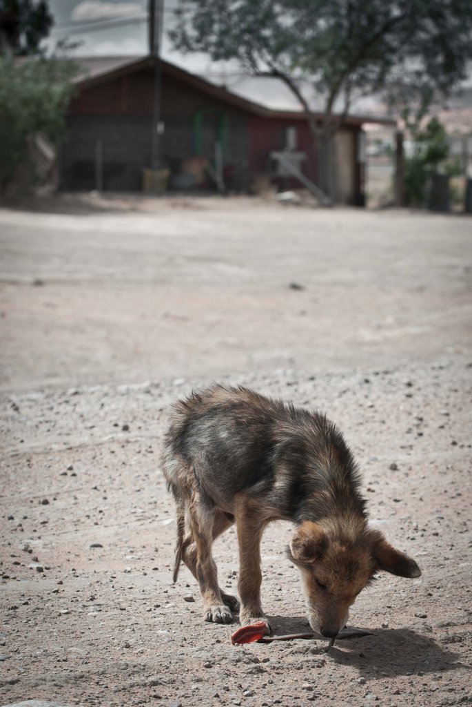 I was moving cross country back to Idaho from Oklahoma, decided to take the more scenic but longer drive through New Mexico and Arizona; along the way we crossed through the Navajo reservation, we saw countless dogs all emaciated along the way. This particular guy caught my attention and I just couldn’t bear the sight of him limping around next to the highway.