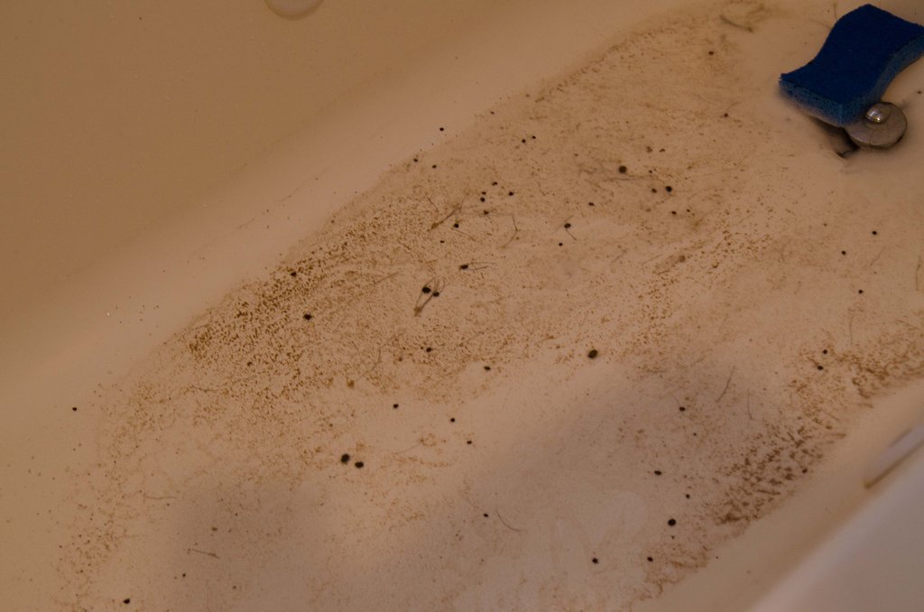 Dead skin, feces, lots of dead ticks, there where still a bunch left on him that latter had to be removed.
