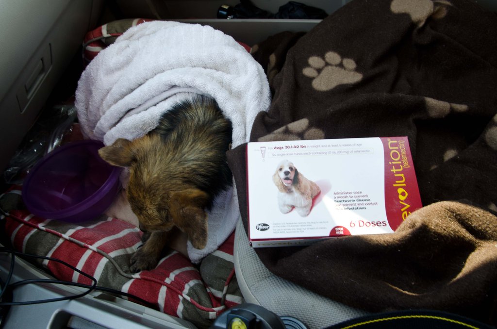 I had extra tick/heartworm medication so I decided to give him some, I was really worried about them crawling off him and into my car.