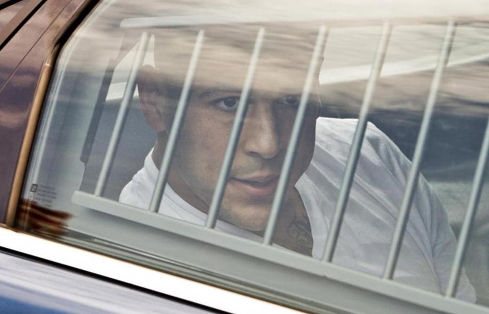 Later Hernandez was arraigned in dramatic fashion before a judge, charged with murder and illegal weapons infractions, and ordered held without bail.
